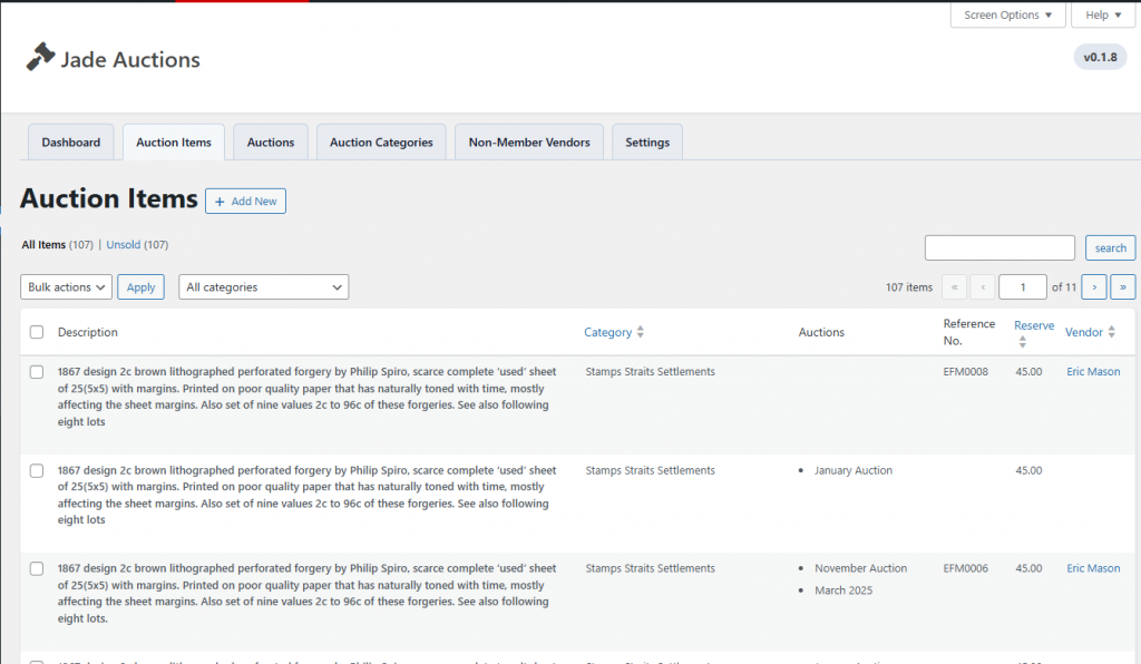 Navigate to the Auction Items list. By default you will be on your list of ‘Unsold’ items.